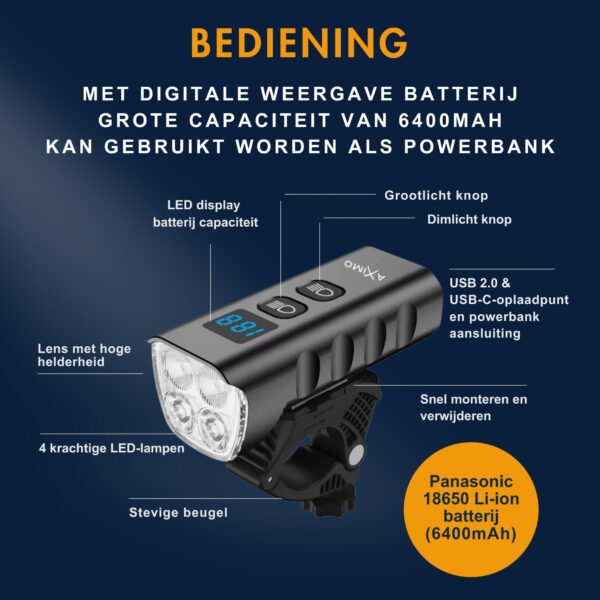 Met de AXIMO fietslamp ervaar je optimaal zicht en veiligheid, zelfs bij de meest uitdagende ritten. Geniet van de kracht en functionaliteit van deze hoogwaardige verlichting!