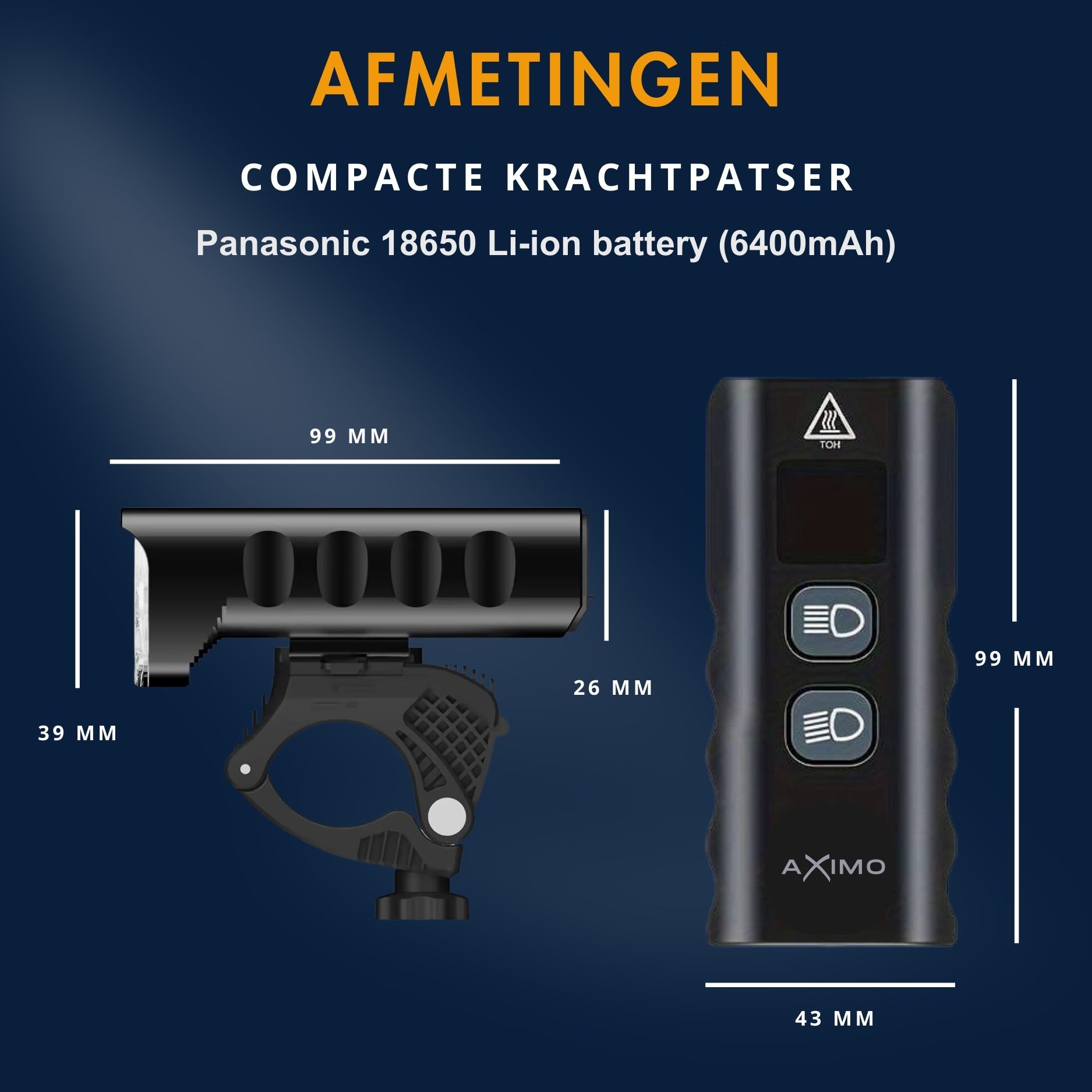 Met de AXIMO fietslamp ervaar je optimaal zicht en veiligheid, zelfs bij de meest uitdagende ritten. Geniet van de kracht en functionaliteit van deze hoogwaardige verlichting!