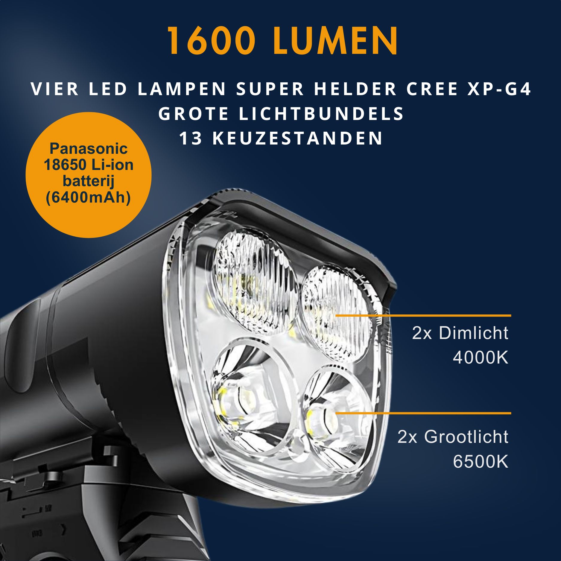 Lichtopbrengst: 1600 lumen, tot 300 meter lichtbereik
