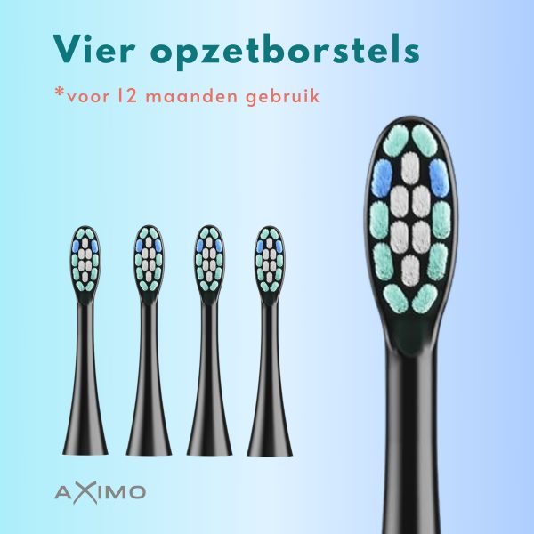 AXIMO opzetborstels voor de AXIMO Elektrische Tandenborstel. Voor een grondige mondverzorging biedt de AXIMO elektrische tandenborstel een effectieve oplossing met krachtige sonische vibraties en handige functies.