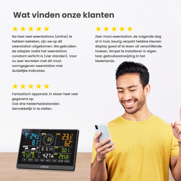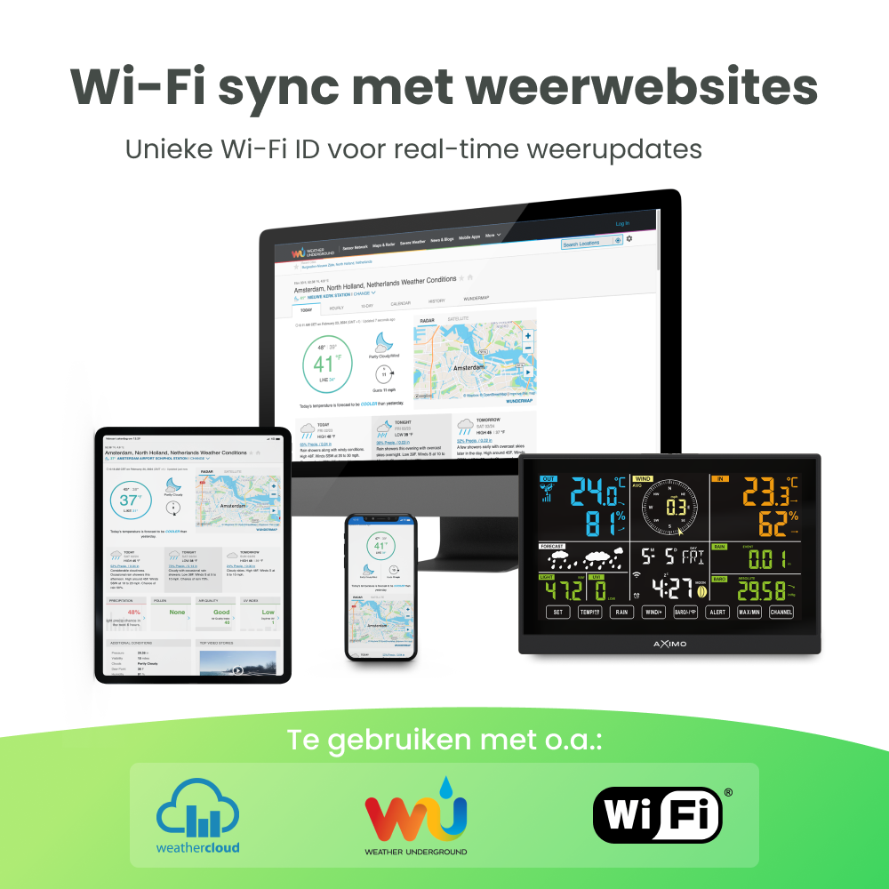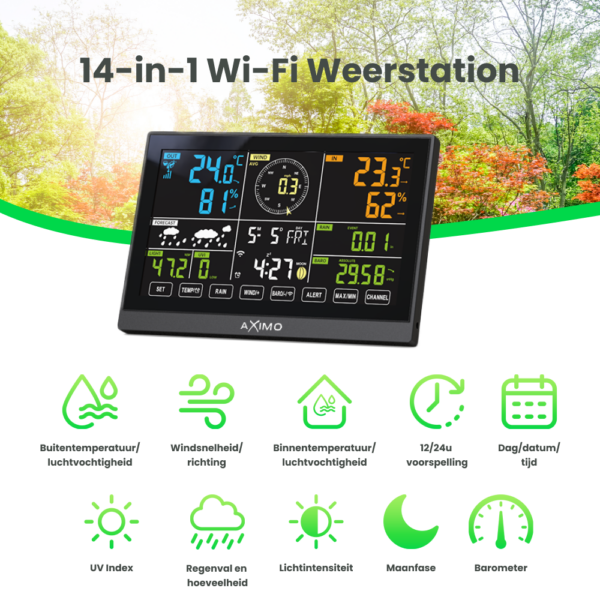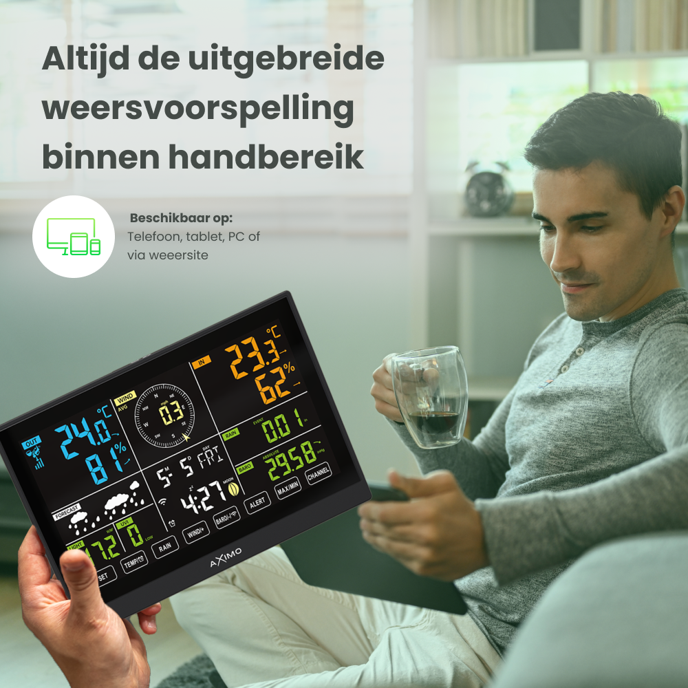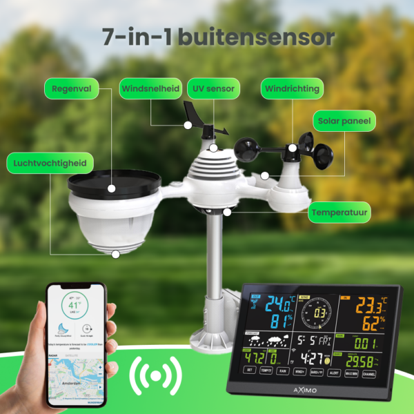 Upgrade jouw weersmonitoring vandaag nog met het AXIMO Wi-Fi weerstation en geniet van uitgebreide en nauwkeurige weersinformatie!