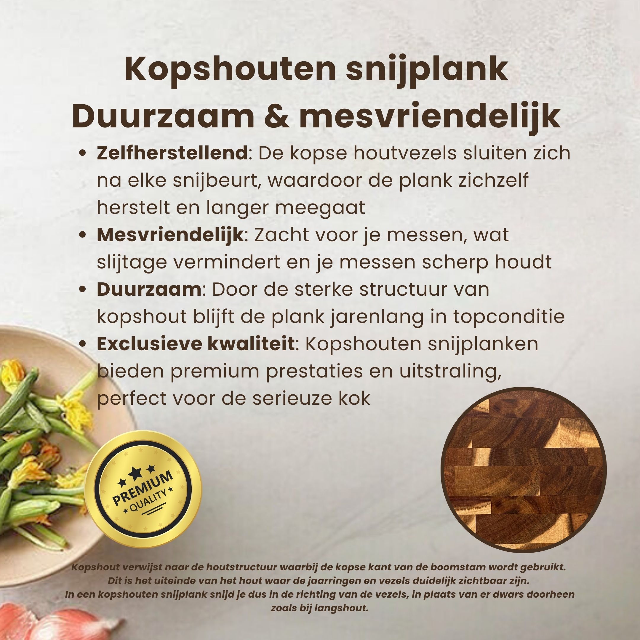 Constructie: Kopshout – zelfherstellend, slijtvast en mesvriendelijk