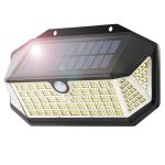 Verhoog de veiligheid en verlicht je buitenruimtes met de Aximo solar buitenlamp. Deze krachtige lamp met 266 LED’s biedt helder licht en is uitgerust met een bewegingssensor die beweging detecteert tot 5 meter. Het slimme design met een 270 graden verlichtingsbereik zorgt voor een brede en effectieve verlichting. Dankzij de drie instelbare standen, waaronder een dimlichtmodus, kun je de lamp aanpassen aan jouw behoeften. De lamp is waterdicht (IP65) en wordt aangedreven door een polykristallijn zonnepaneel, waardoor hij energiezuinig en milieuvriendelijk is.