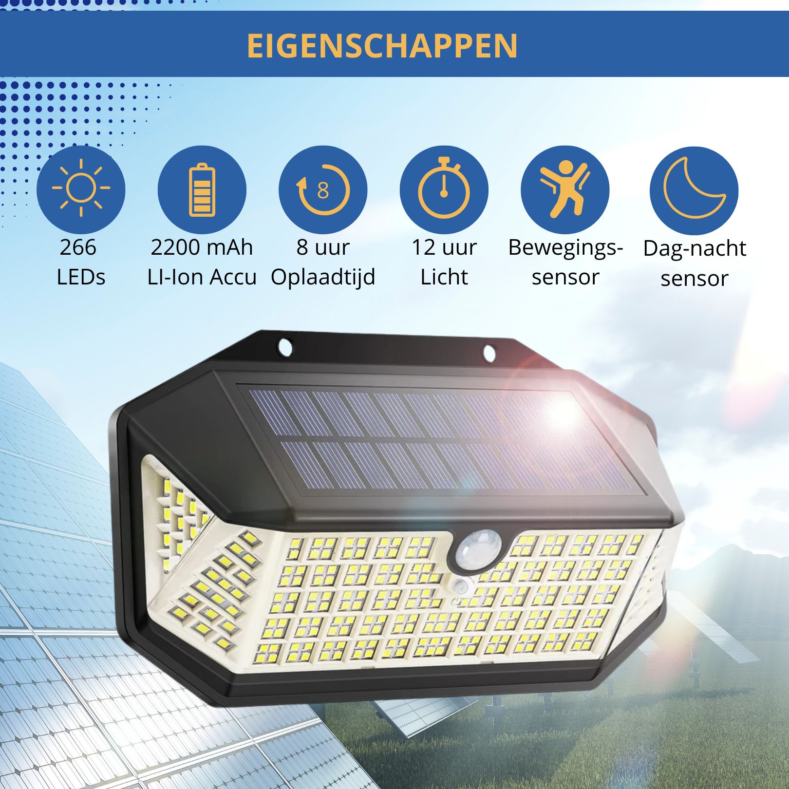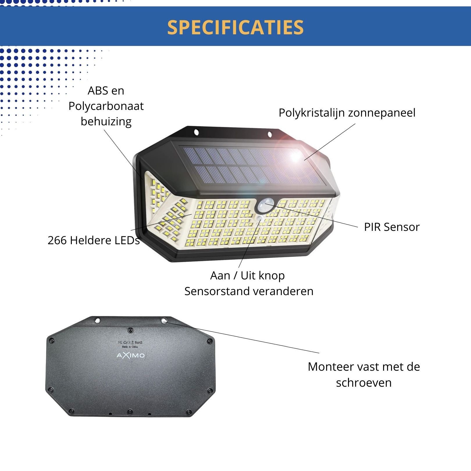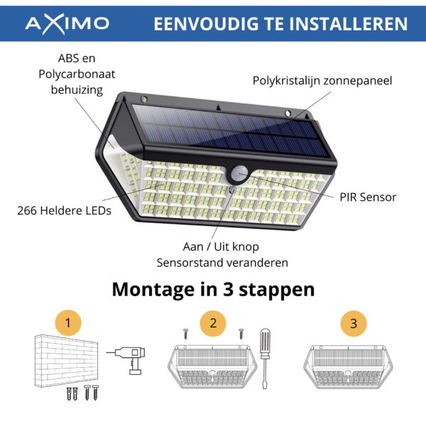1 x 266 LED Aximo Solar Buitenlamp