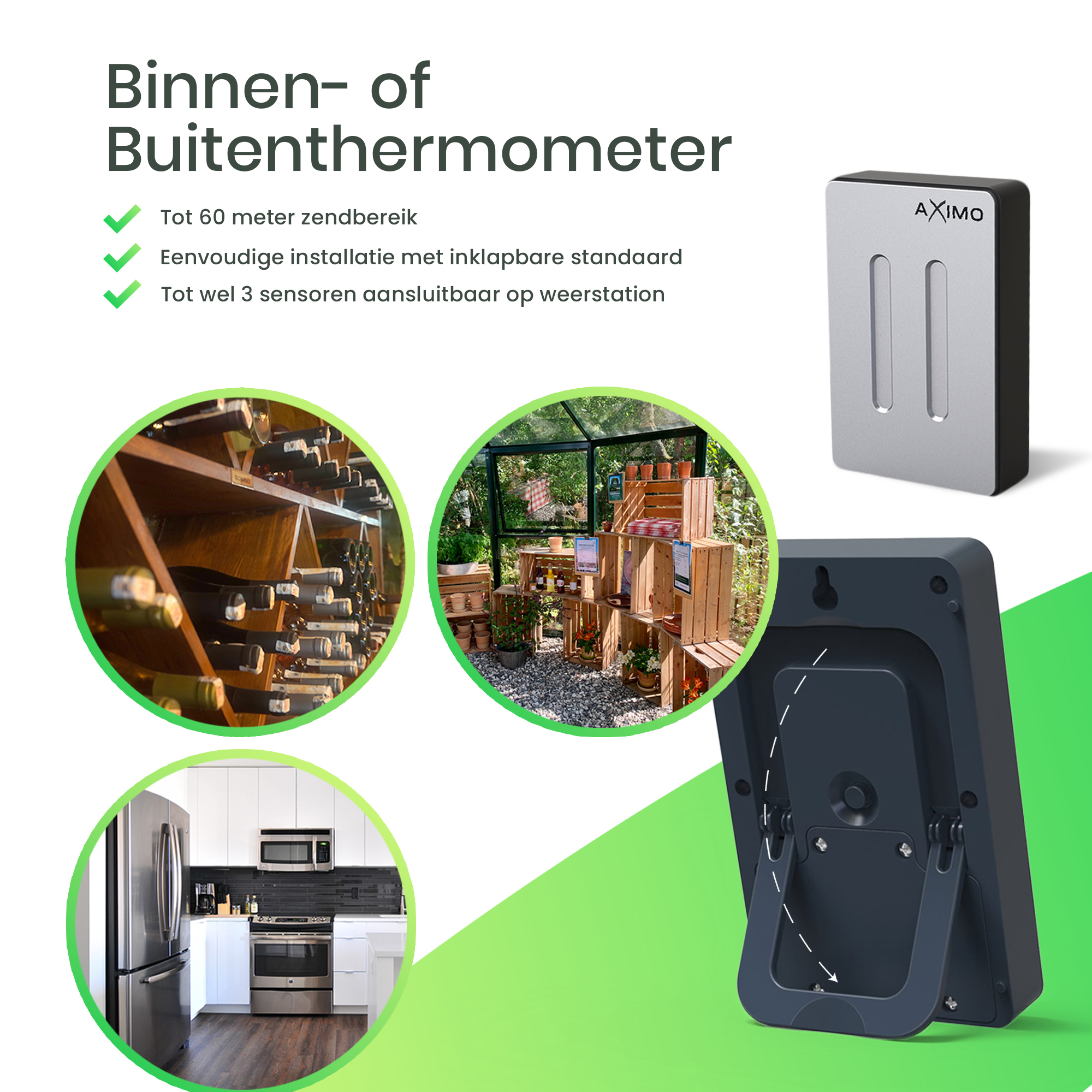 Draadloze Sensor: Tot 50 meter bereik, geschikt voor buitengebruik en binnen in de garage of kelder.